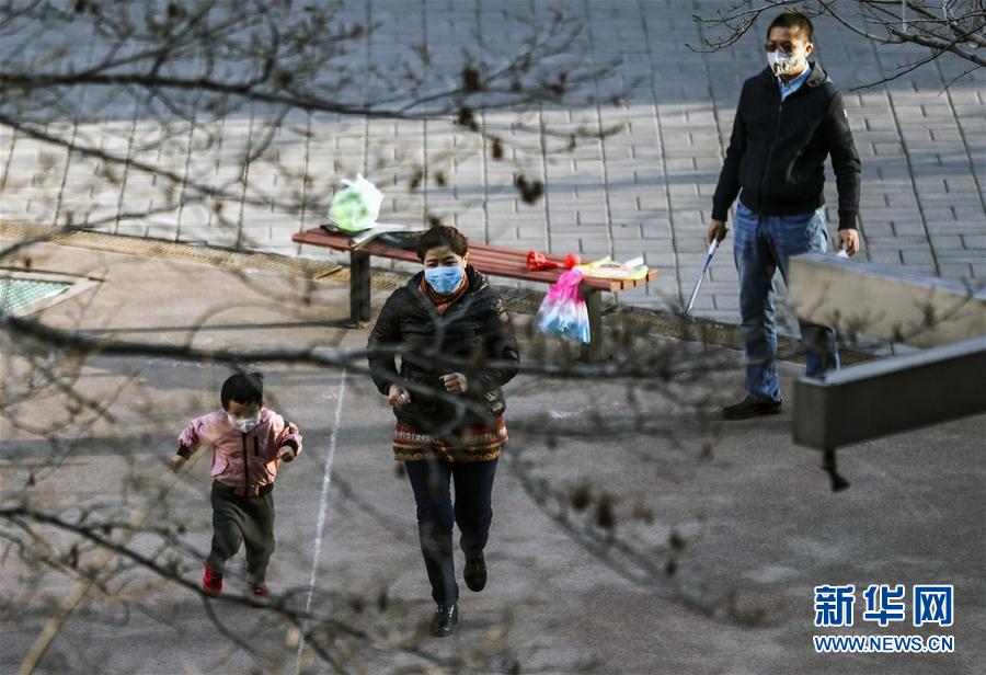 春天来临,天气转暖,随着疫情防控形势向好,北京市西城区香炉营东巷某小区的居民纷纷走出家门,以各种方式锻炼身体,强健体魄,享受春光。 这是一名居民带着小朋友跑步锻炼(3月15日摄)。 新华社记者兰红光摄