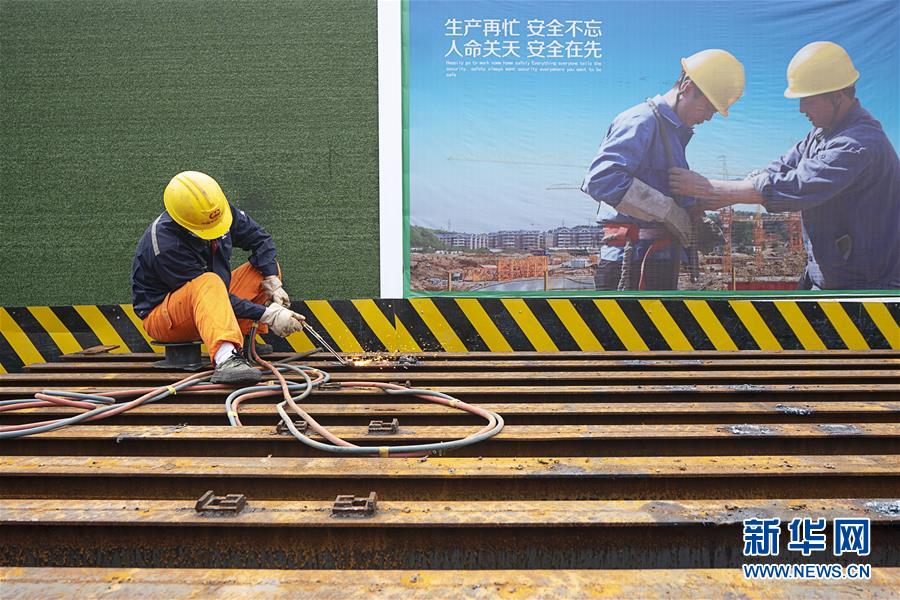 3月24日,中铁大桥局的施工人员在作业。 当日,由武汉市城投集团公司建设、中铁大桥局施工的武汉江汉七桥建设项目正式复工。施工人员在做好防疫工作的前提下,投入到紧张的建设之中。据了解,江汉七桥项目是武汉市首个复工的桥梁工程。 新华社记者熊琦摄