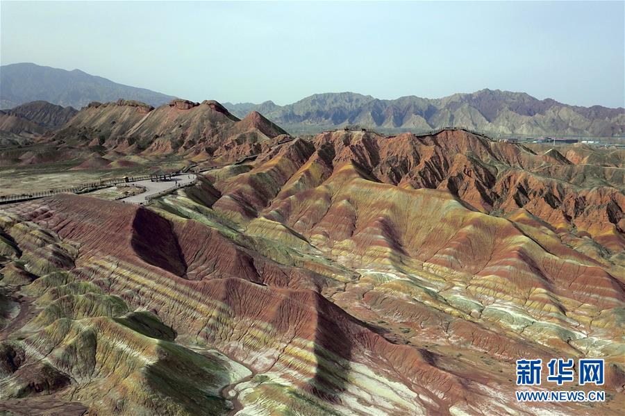 3月24日,游客在张掖七彩丹霞景区欣赏彩色丘陵景观(无人机照片)。 随着疫情防控形势持续向好,作为丝绸之路上备受国内外游客青睐的“打卡地”,甘肃省张掖市七彩丹霞景区在抓牢疫情防控措施的前提下,采取限人数、分时段、间隔性入园等举措有序恢复开放。张掖七彩丹霞景区属张掖国家地质公园,是罕见的丹霞地貌与彩色丘陵景观复合区。 新华社记者 范培珅 摄