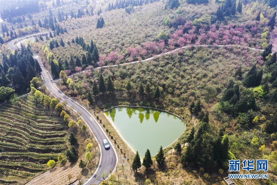 3月25日拍摄的放牛坪村春色(无人机照片)。 新华社记者 王全超 摄