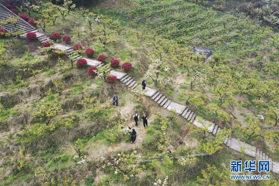 3月25日,游客在放牛坪村游玩(无人机照片)。 新华社记者 王全超 摄