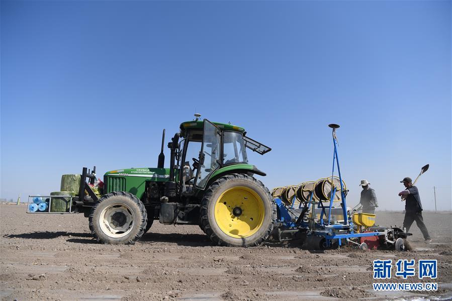 3月25日,在伊犁河谷察布查尔锡伯自治县堆齐牛录乡,一台卫星导航自动驾驶播种机在田间播种甜菜。 近日,“塞外江南”新疆伊犁河谷天气转暖,当地种植户抢抓农时,积极投入春耕生产。 新华社记者 沙达提 摄