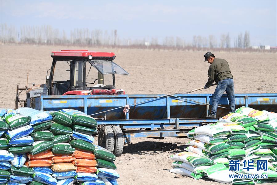 3月25日,在伊犁河谷察布查尔锡伯自治县堆齐牛录乡,种植户准备施肥。 新华社记者 沙达提 摄