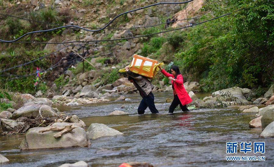 3月25日,在桂黔乌英苗寨,村民将螺苗搬往田间,准备投放。 新华社记者 黄孝邦 摄