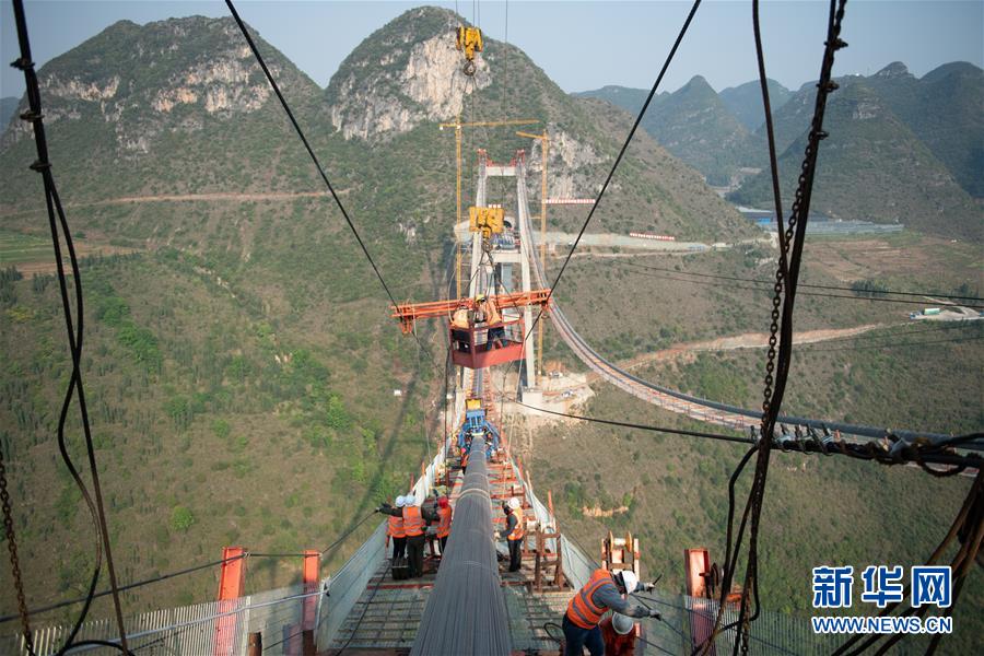工人在峰林特大桥主塔塔顶施工(3月25日摄)。 近日,由贵州公路集团承建的兴义市环城高速公路项目在做好疫情防控的同时,抓紧复产复工,目前工程复工率已达100%。 新华社记者 陶亮 摄