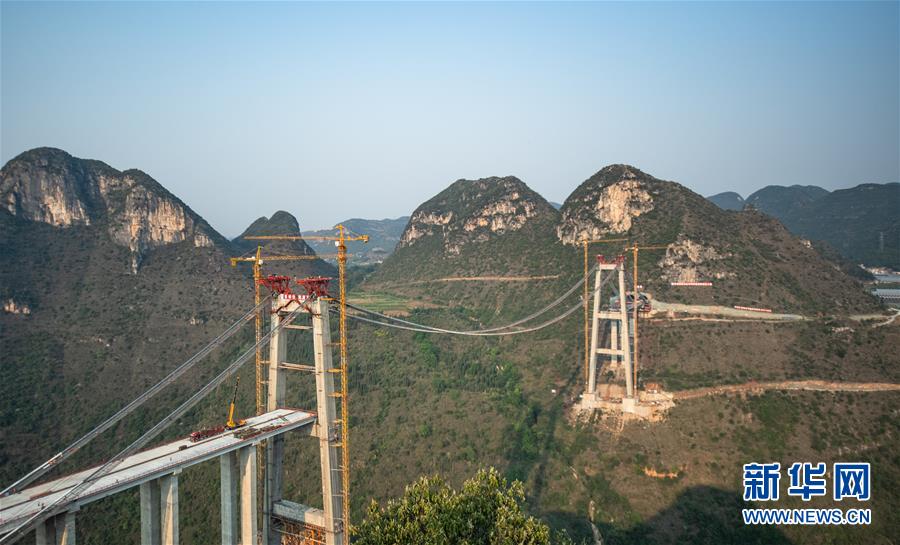 这是建设中的兴义环高峰林特大桥(3月25日摄)。 近日,由贵州公路集团承建的兴义市环城高速公路项目在做好疫情防控的同时,抓紧复产复工,目前工程复工率已达100%。 新华社记者 陶亮 摄
