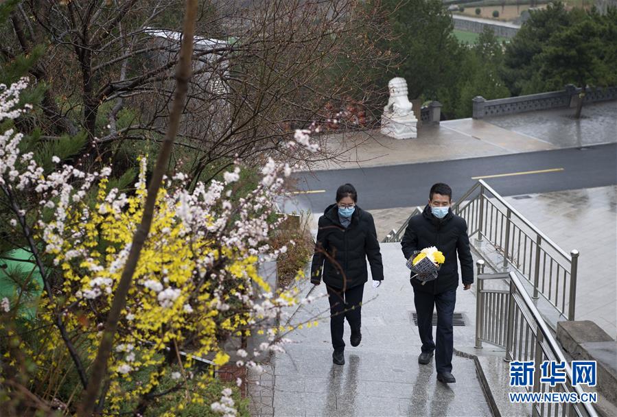 3月26日,在太原市仙居园公墓,工作人员为不能到现场祭扫的市民提供代祭服务。新华社记者 杨晨光 摄