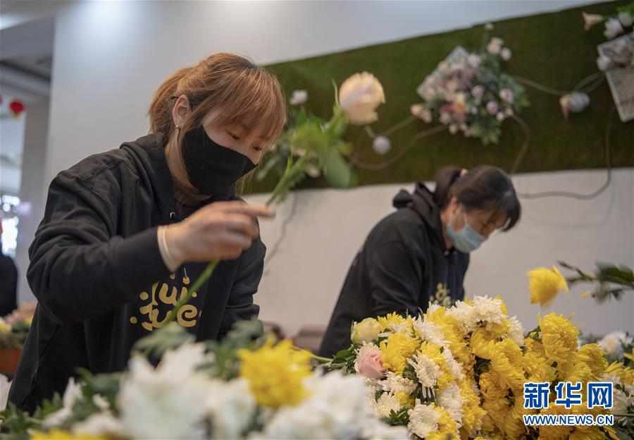 3月26日,在太原市仙居园公墓,工作人员在包装鲜花。新华社记者 杨晨光 摄
