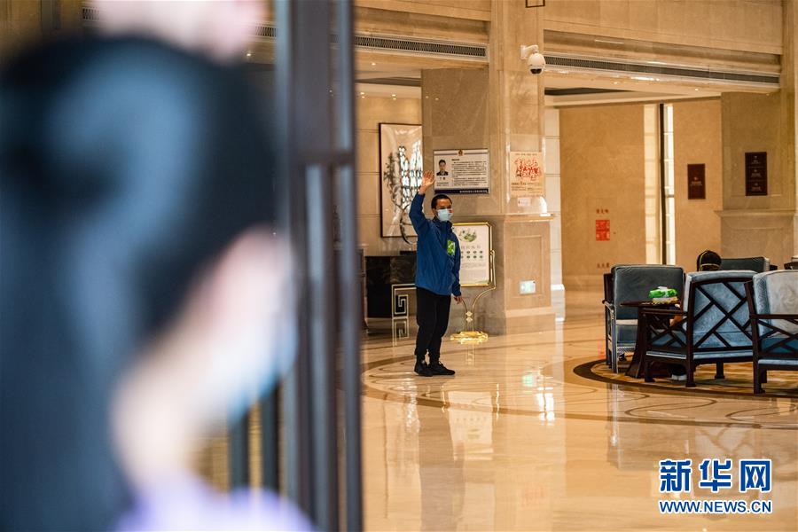 黄秀峰和妻子章婷挥手道别(3月26日摄)。新华社记者 陶亮 摄