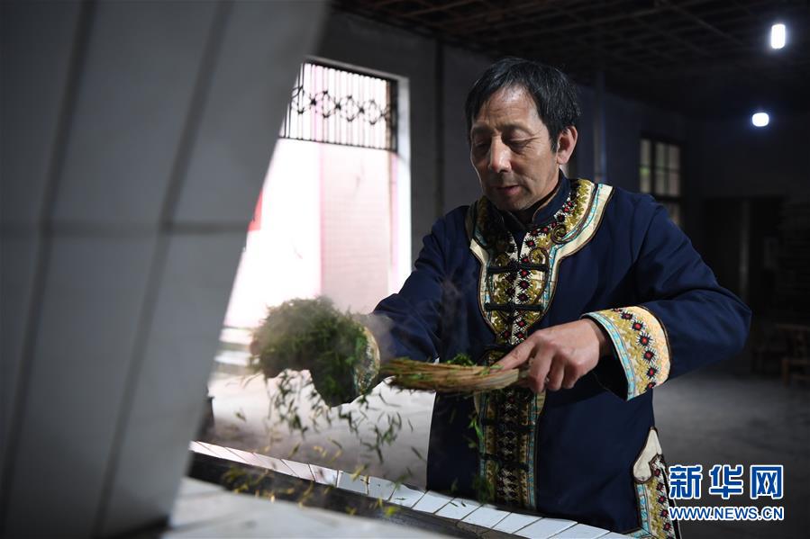 3月27日,湖南省湘西土家族苗族自治州古丈县阿七茶厂的制茶师在手工炒制明前古丈毛尖茶。 近日,随着气温升高,湖南省湘西土家族苗族自治州古丈县春茶开始采摘,制茶师将茶青制为当地特色的明前古丈毛尖茶。 新华社记者 薛宇舸 摄