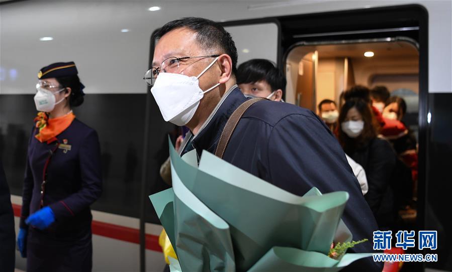 3月28日,从广州南始发的G1112次列车到达武汉站,旅客下车。 新华社记者 程敏 摄