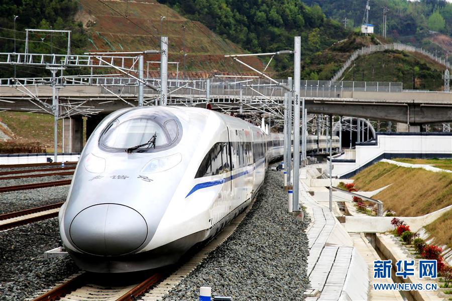 3月28日,G6820次列车开往武汉。 当日13时04分,G6820次十堰东至汉口的高铁列车驶离站台,前往武汉。这是恢复正常运行后的首趟十堰至武汉的高铁列车。 新华社发(曹忠宏 摄)