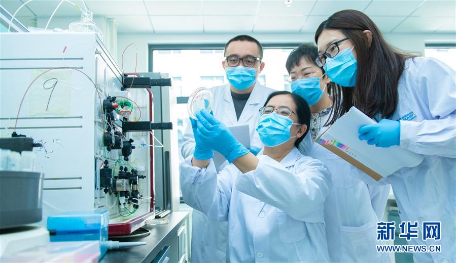 3月20日,中国科学院微生物研究所研究员严景华与团队的学生们讨论实验结果。 新华社发(王强 摄)