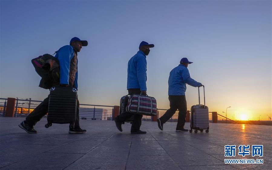 来自墨玉县的务工人员抵达阿勒泰地区福海县火车站(3月28日摄)。他们将在福海县稳定务工。新华社记者 赵戈 摄