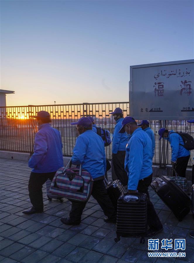 来自墨玉县的务工人员抵达阿勒泰地区福海县火车站(3月28日摄)。他们将在福海县稳定务工。新华社记者 赵戈 摄