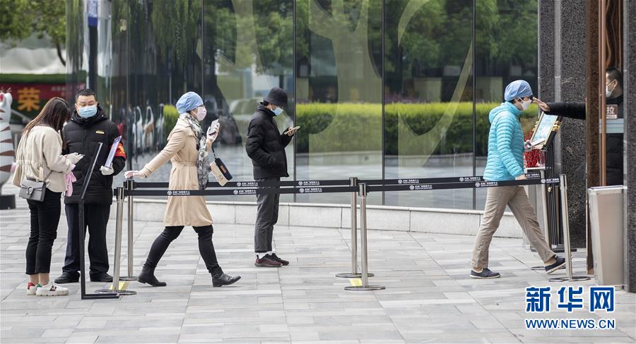 3月30日,顾客排队进入武商国际广场。 当日,武汉市多家商场开门迎客。 新华社记者费茂华摄