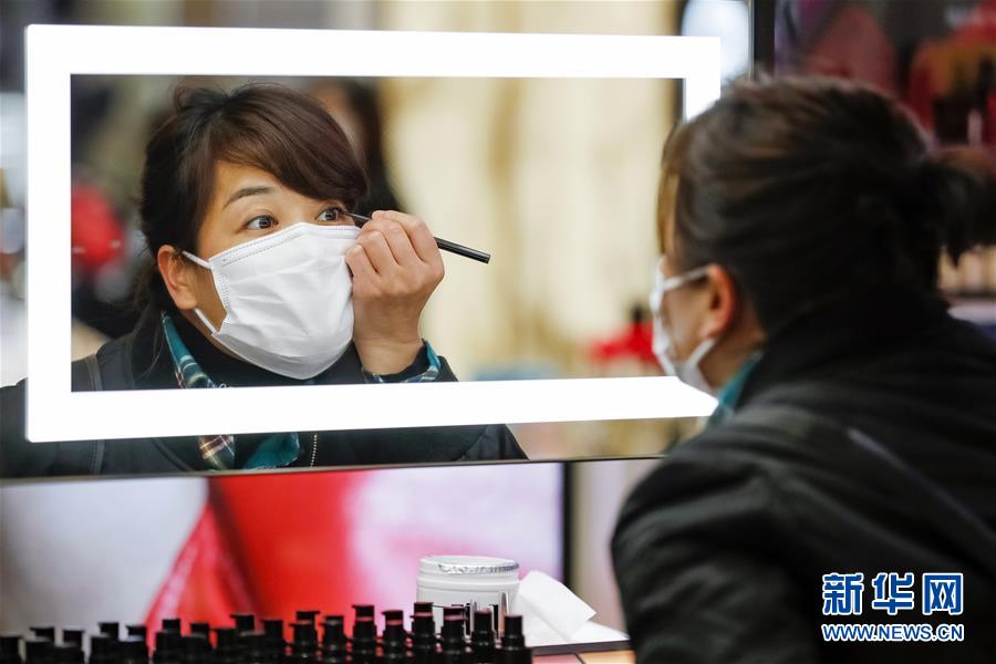 3月30日,在武汉市武商广场,消费者在试用眉笔。 当日,武汉市多家商场开门迎客。 新华社记者 沈伯韩 摄