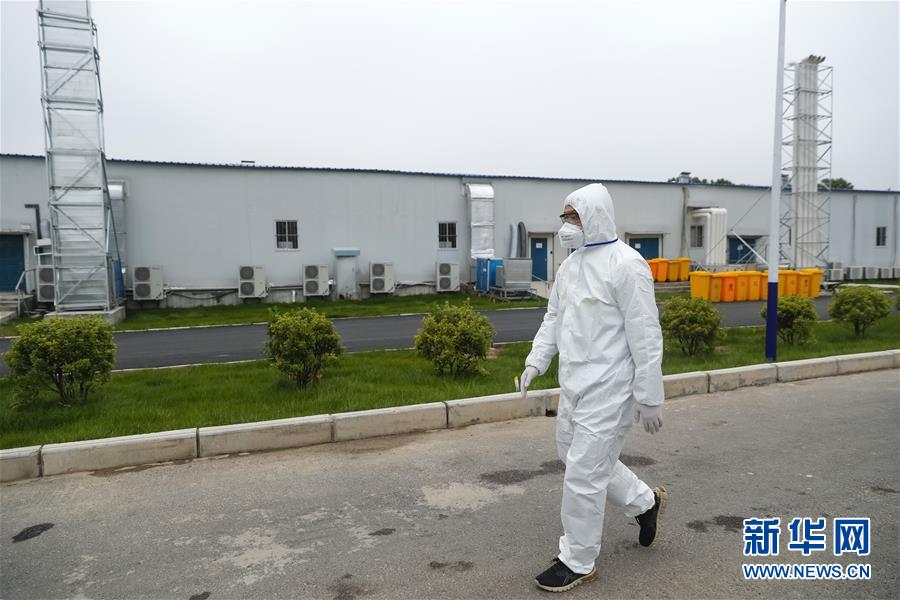 3月31日,尹典进入武汉火神山医院,准备进行巡视检查工作。新华社记者 沈伯韩 摄