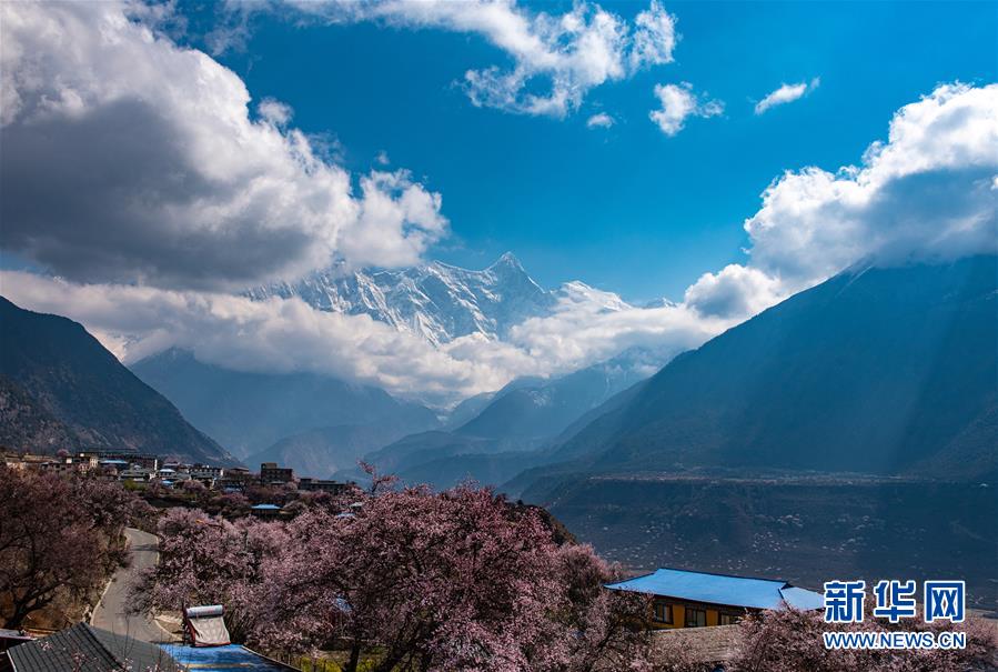 南迦巴瓦峰下盛开的桃花(4月1日摄)。 春天到来,雅鲁藏布江大峡谷中的桃花次第开放,将河谷两岸装点得如诗如画。 新华社记者 侯捷 摄