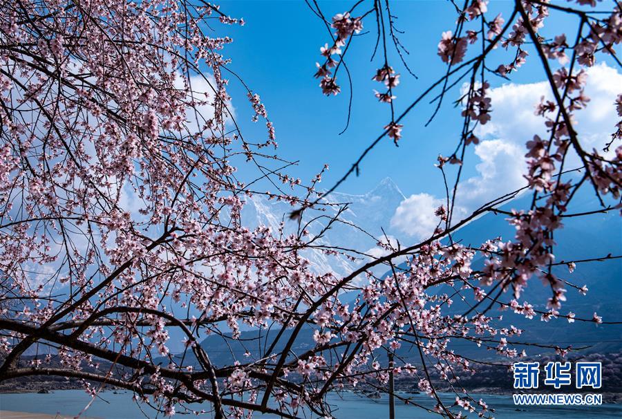 南迦巴瓦峰下盛开的桃花(4月1日摄)。 春天到来,雅鲁藏布江大峡谷中的桃花次第开放,将河谷两岸装点得如诗如画。 新华社记者 侯捷 摄