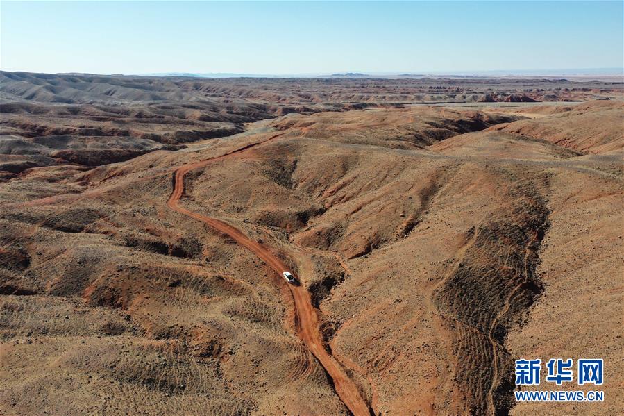 4月1日,在策耿家牧场,父母驾车陪着她找网上课(无人机照片)。 新华社记者 刘磊 摄