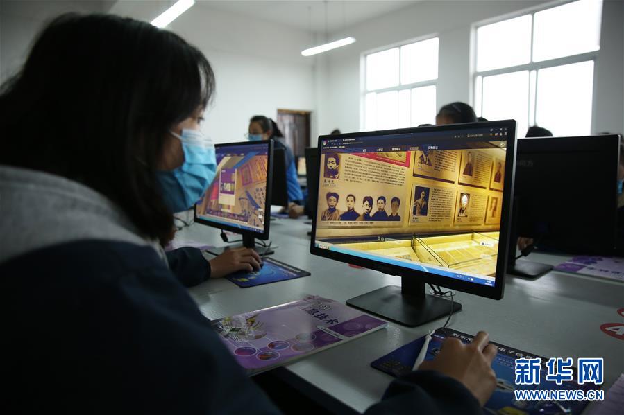 4月2日,在贵州省黔东南苗族侗族自治州丹寨县第二中学,学生们通过浏览网络展馆学习革命英烈的事迹。