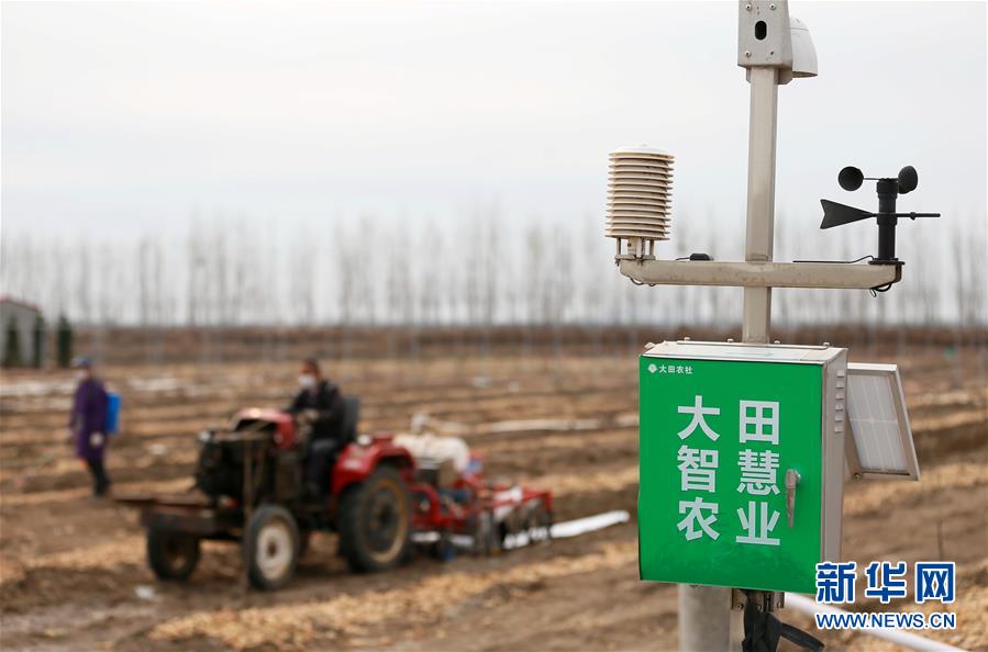 4月2日,在山东青岛市即墨区段泊岚镇程戈庄二村,农民利用农情监测系统采集各类信息。 新华社发(梁孝鹏 摄)