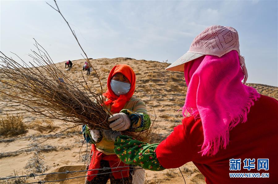 腾格里沙漠治沙忙