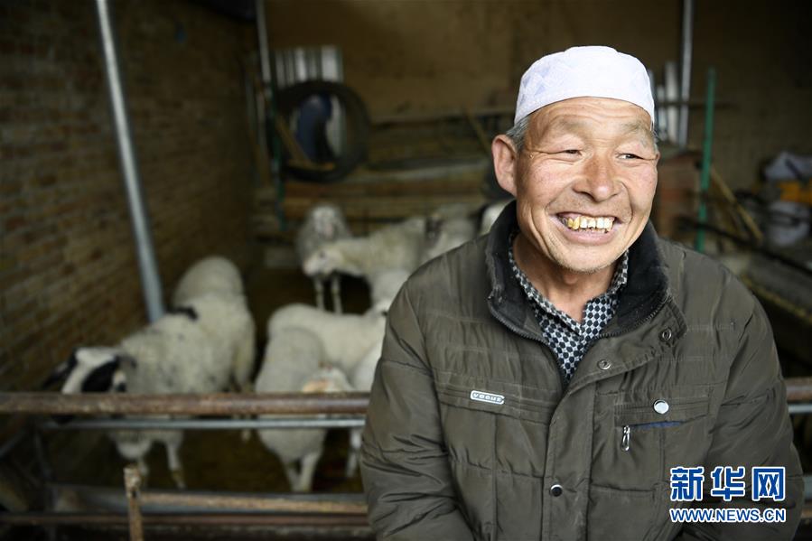 宁夏固原市彭阳县古城镇任河村村民马德忠在自家羊圈前讲述电力扶贫对养殖业发展的促进(4月2日摄)。新华社记者 王鹏 摄