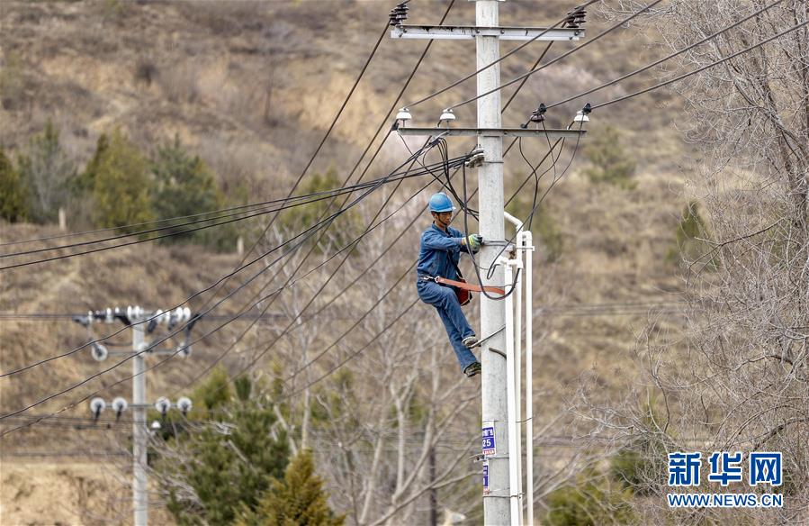 4月2日,在宁夏固原市彭阳县古城镇任河村,电力工人为农村动力电用户免费安装电表箱。新华社记者 杨植森 摄