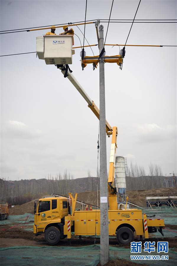 4月2日,宁夏固原市彭阳县电力工作人员在进行线路带电检修,保障农村用户用电。新华社记者 王鹏 摄