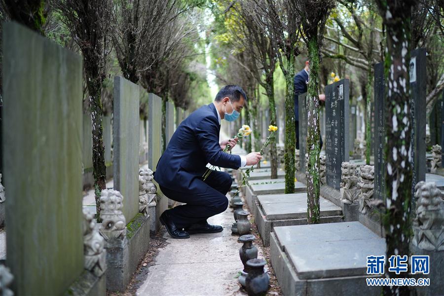 在江西省南昌市瀛上墓区琼山墓园,工作人员在为市民进行代祭扫(4月1日摄)。 新华社记者 周密 摄