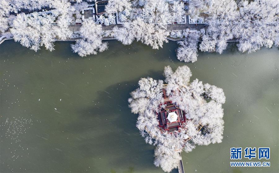 4月5日拍摄的拉萨宗角禄康公园雪景(无人机照片)。新华社记者 普布扎西 摄