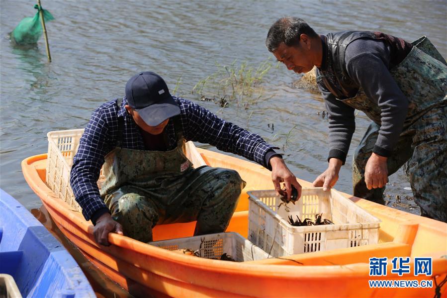 4月5日,沱湖乡大岗村村民在分拣小龙虾。 近年来,安徽省五河县沱湖乡大岗村“稻虾共养”扶贫基地因地制宜,发展立体生态种养殖模式,助力当地农民增收,让昔日贫困村走上生态致富路。 新华社记者 曹力 摄