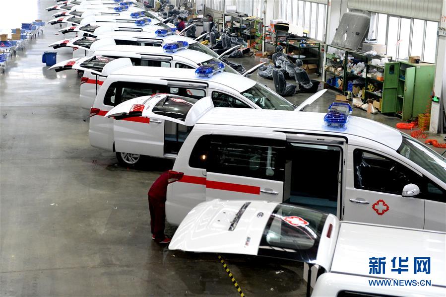 工作人员在江淮汽车商务车公司改装救护车(2月25日摄)。新华社发(黄博涵 摄)