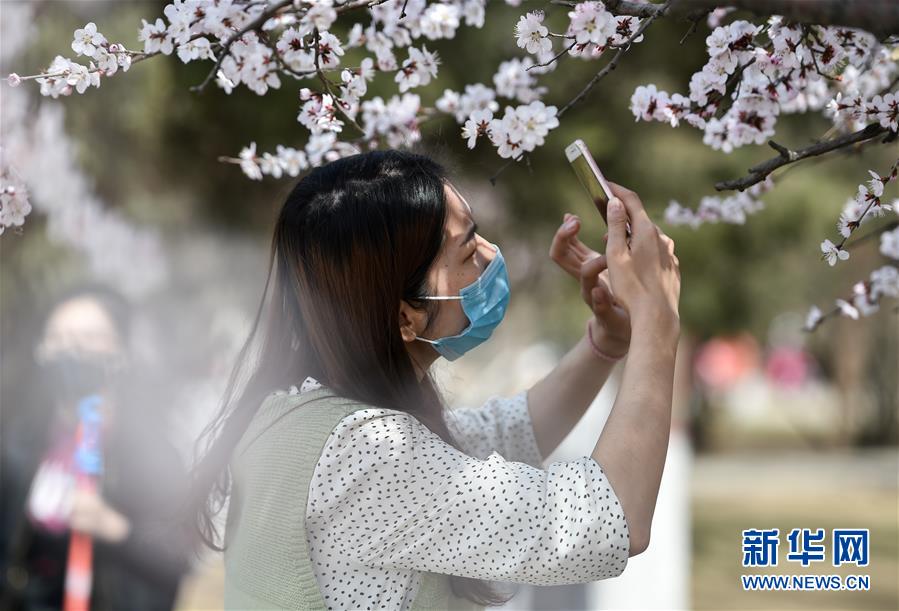 4月6日,市民在呼和浩特市公主府公园拍摄桃花。 当日,内蒙古呼和浩特市天气晴好。 新华社记者 安路蒙 摄