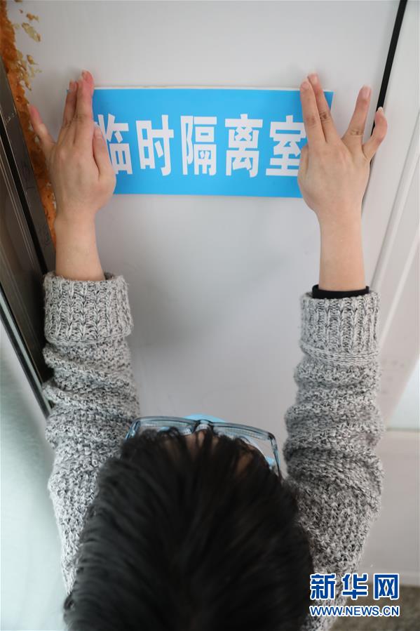 4月6日,在湖南省道县第一中学,工作人员在布置临时隔离室。 近日,湖南省永州市各学校按照疫情防控工作的部署,精心准备迎接开学复课。根据湖南省教育厅下发的通知,湖南省内中学高三、初三年级将于4月7日开学。 新华社发(何红福 摄)