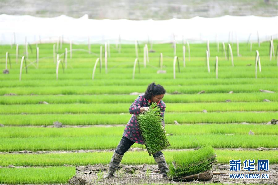 4月6日,在湖南省娄底市双峰县荷叶镇长塘村,农民在搬运秧盘。 眼下,湖南省娄底市双峰县进入插秧季,当地农民抢抓农时忙着翻耕、施肥、插秧,水田中一派繁忙景象。 新华社发(李建新摄)
