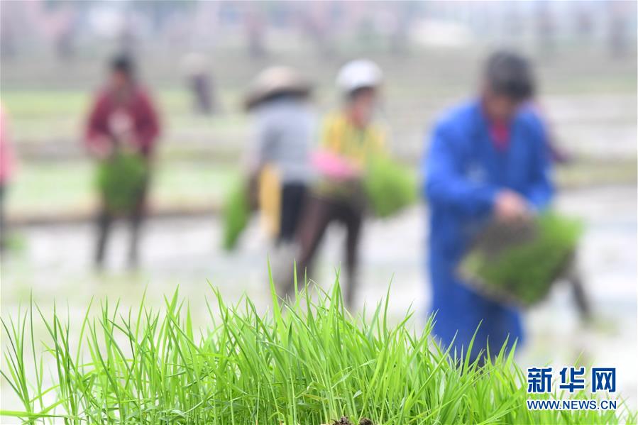 4月6日,在湖南省娄底市双峰县井字镇花桥村,农民在田间忙碌。 眼下,湖南省娄底市双峰县进入插秧季,当地农民抢抓农时忙着翻耕、施肥、插秧,水田中一派繁忙景象。 新华社发(李建新摄)