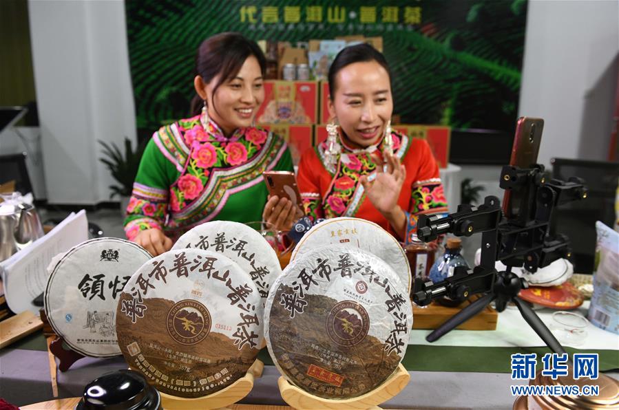 4月6日,宁洱哈尼族彝族自治县群众通过网络直播推介普洱茶。 近日,云南省普洱市宁洱哈尼族彝族自治县通过网络直播的方式,向消费者和客商推介普洱茶和土特产,助推山区农民脱贫增收。 新华社记者 杨宗友 摄
