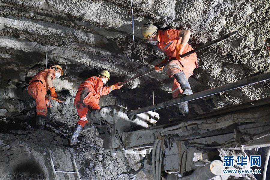 4月7日,中铁十八局集团公司的建设者在玉磨铁路太达村隧道施工。 负责玉磨铁路太达村隧道施工任务的中铁十八局集团公司,在做好疫情防控同时,目前正加紧施工建设。 玉磨铁路起于云南省玉溪市,经普洱市、西双版纳傣族自治州到中老两国边境磨憨口岸,正线全长500多公里。 新华社记者 杨宗友 摄