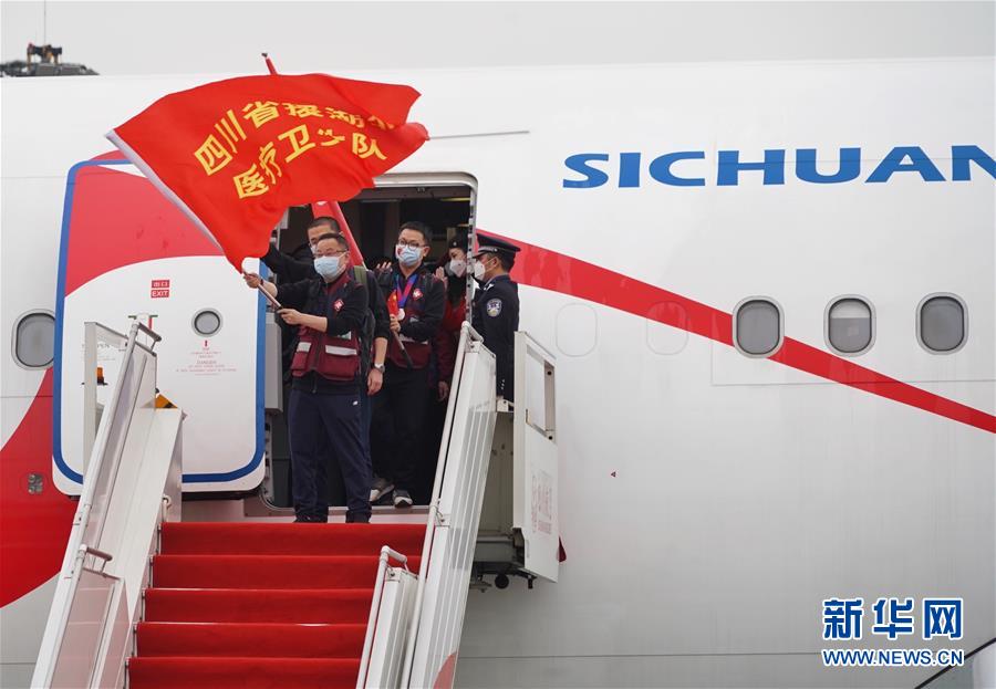 4月7日,在成都双流国际机场,四川最后一批援助湖北医疗队队员走下舷梯。 当日,四川省最后一批援助湖北医疗队队员162人从武汉乘坐飞机回到成都。至此,四川援助湖北医疗队全部平安返回。 新华社记者 王曦 摄