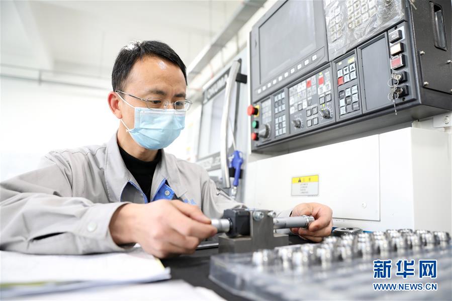 4月7日,大连长之琳科技发展有限公司职工在车间测量产品数据。 全面复工复产以来,辽宁省大连市民营装备制造业企业在做好疫情防控的同时,开足马力保障生产有序进行,满足重点行业用户需求,确保完成全年订单任务。 新华社记者 姚剑锋 摄