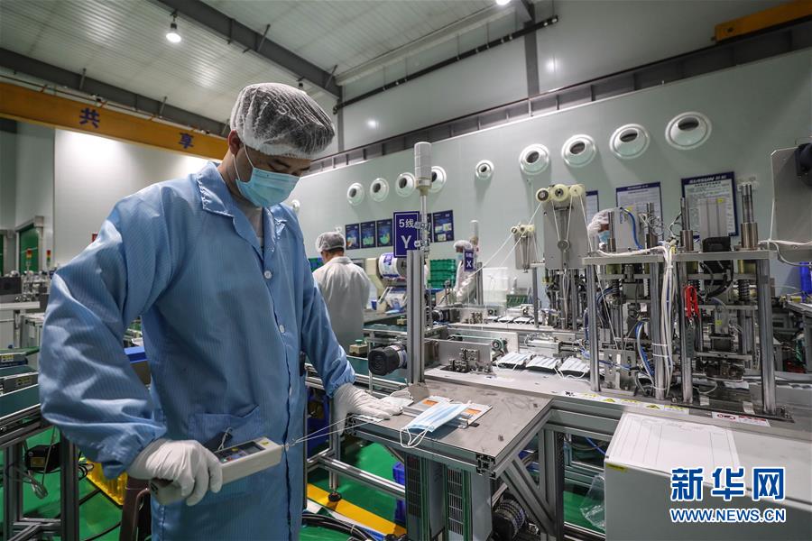 4月7日,工作人员在新松机器人自动化股份有限公司口罩生产线检测口罩质量。 4月中旬起,辽宁省将分5个批次组织师生分级分类、错峰错时返校复课。为此,新松机器人自动化股份有限公司落实辽宁省发改委相关指示,正加紧生产师生复课需要的口罩,目前口罩产能约为每天70万片。 新华社记者 潘昱龙 摄
