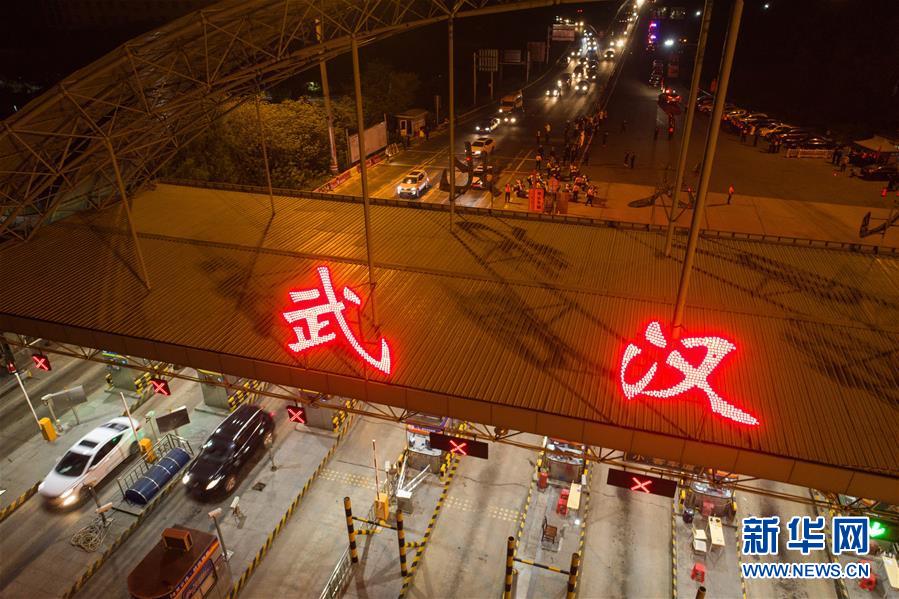 4月8日凌晨,车辆通过武汉北高速收费站(无人机照片)。新华社记者 肖艺九 摄