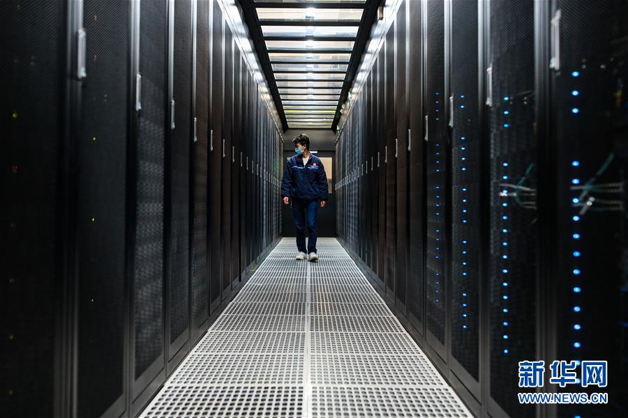 4月9日,工作人员在中国电信集团公司云计算贵州信息园内的维护中心内检查服务器运行情况。该信息园现已全面复工。 近期,贵州大数据产业的重点项目、相关企业在做好疫情防控的前提下全面复工。 新华社记者 欧东衢 摄