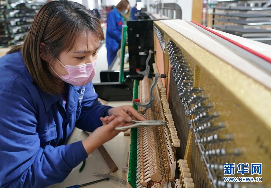 4月9日,工人在沧州市肃宁县从北京引进来的一家钢琴生产企业的生产车间工作。 京津冀协同发展战略实施以来,河北省沧州市依托区域优势,抢抓发展机遇,在承接京津产业转移方面不断向广度和深度拓展。据介绍,截至目前,该市先后引进汽车及零部件制造、生物医药、服装服饰、现代物流、文化产业和印刷等项目1400多个,协议总投资6410多亿元。 新华社记者杨世尧摄