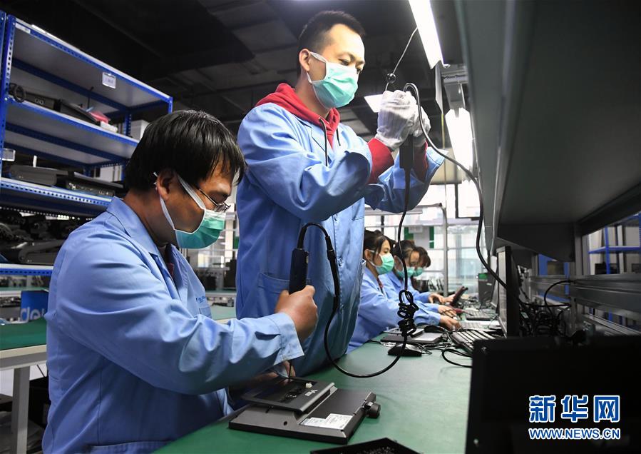 4月9日,在中关村环保科技示范园内的北京佳讯飞鸿电气股份有限公司生产车间,工作人员在组装产品。 近期,北京市海淀区中关村环保科技示范园内的企业在做好疫情防控的同时,有序复工复产。 据了解, 园区现有企业70余家,企业员工2万余人。截至4月上旬,园区62家企业陆续复工,复工人数达1.7万余人,企业现场复工率近90%。 新华社记者 任超 摄