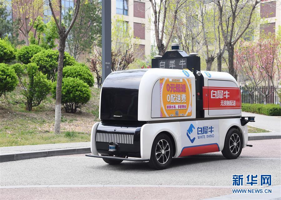 4月9日,在中关村环保科技示范园,无人配送车在配送物品。 近期,北京市海淀区中关村环保科技示范园内的企业在做好疫情防控的同时,有序复工复产。 据了解, 园区现有企业70余家,企业员工2万余人。截至4月上旬,园区62家企业陆续复工,复工人数达1.7万余人,企业现场复工率近90%。 新华社记者 任超 摄