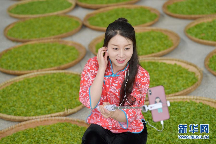 4月8日,鹤峰县鑫农茶业有限公司工作人员田玉妙通过直播介绍制茶过程。 为促进湖北省鹤峰县40万亩生态茶园的茶叶销售,近日,当地多家茶企积极与电商平台对接,通过直播的方式,向消费者直观呈现茶叶采摘到生产制作的全过程,助力“带茶出山”,帮助茶农脱贫增收。 新华社发(杨顺丕摄)
